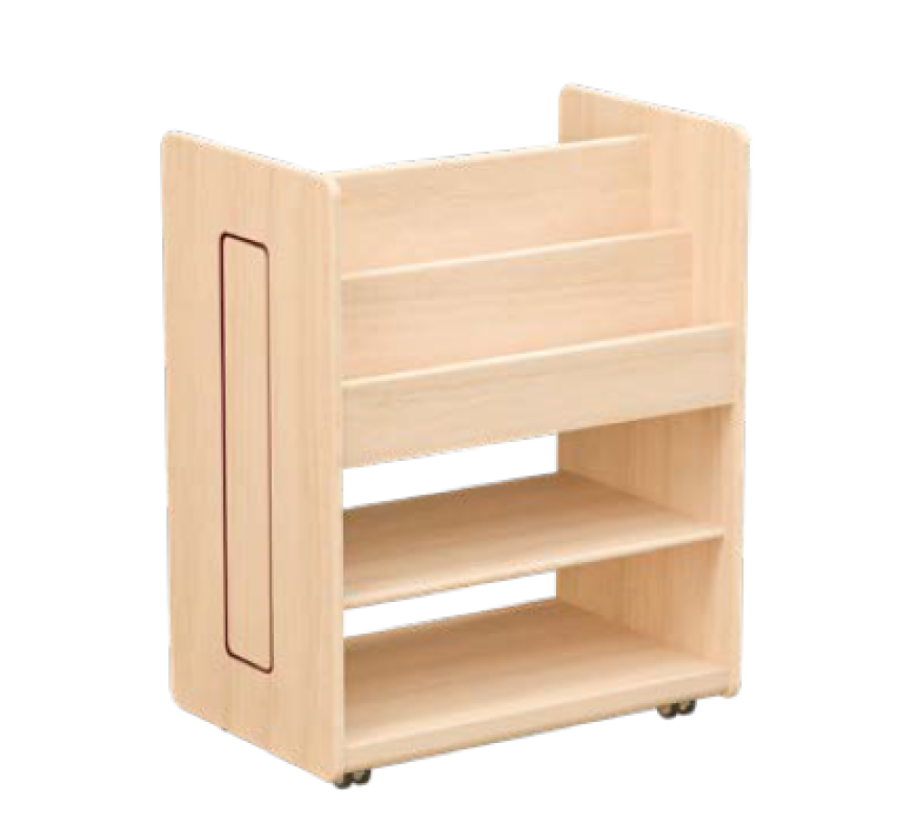 تتميز بعجلات قوية تسهّل الحركة، مع أرفف مناسبة لترتيب الكتب والقصص بطريقة منظمة وآمنة.