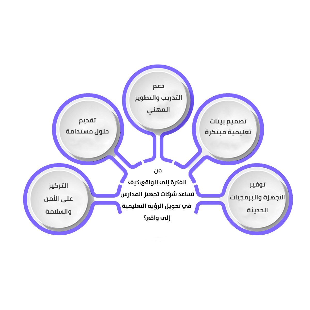 - تزويد المدارس بأحدث الأجهزة التكنولوجية مثل الألواح الذكية وأجهزة الكمبيوتر، إلى جانب البرمجيات التعليمية التي تدعم المنهج الدراسي وتساعد في تقديم المحتوى بشكل تفاعلي.