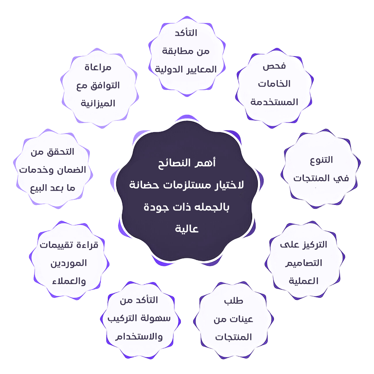 اتباع هذه النصائح يضمن اختيار مستلزمات حضانة بالجملة تتمتع بجودة عالية وتسهم في توفير بيئة مثالية وآمنة للأطفال.